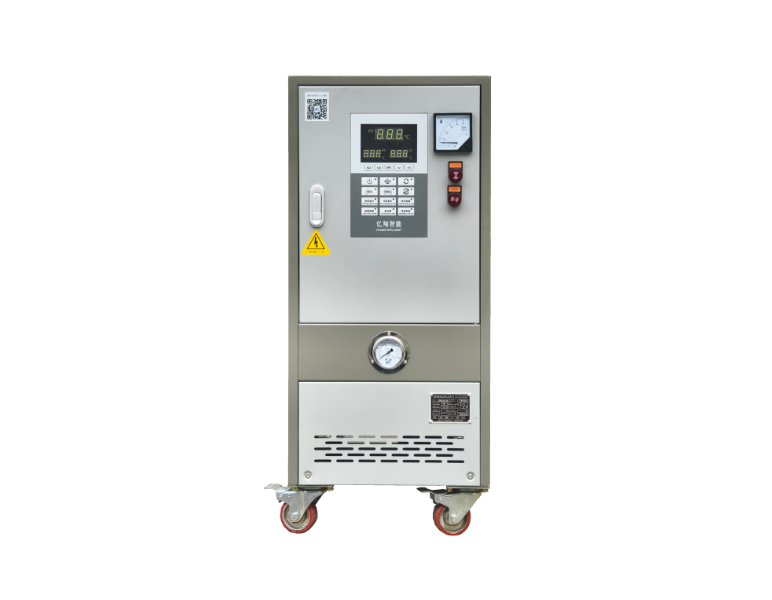 油温机以导热油为介质,通过储油箱、循环泵、加热器及温控系统构成闭环回路:工作时导热油经循环泵打入被控温设备(如模具、辊筒反应釜),再返回系统完成热量交换,通过PID温控或PLC控制实现常温至最高400℃的精准控温(±1℃)